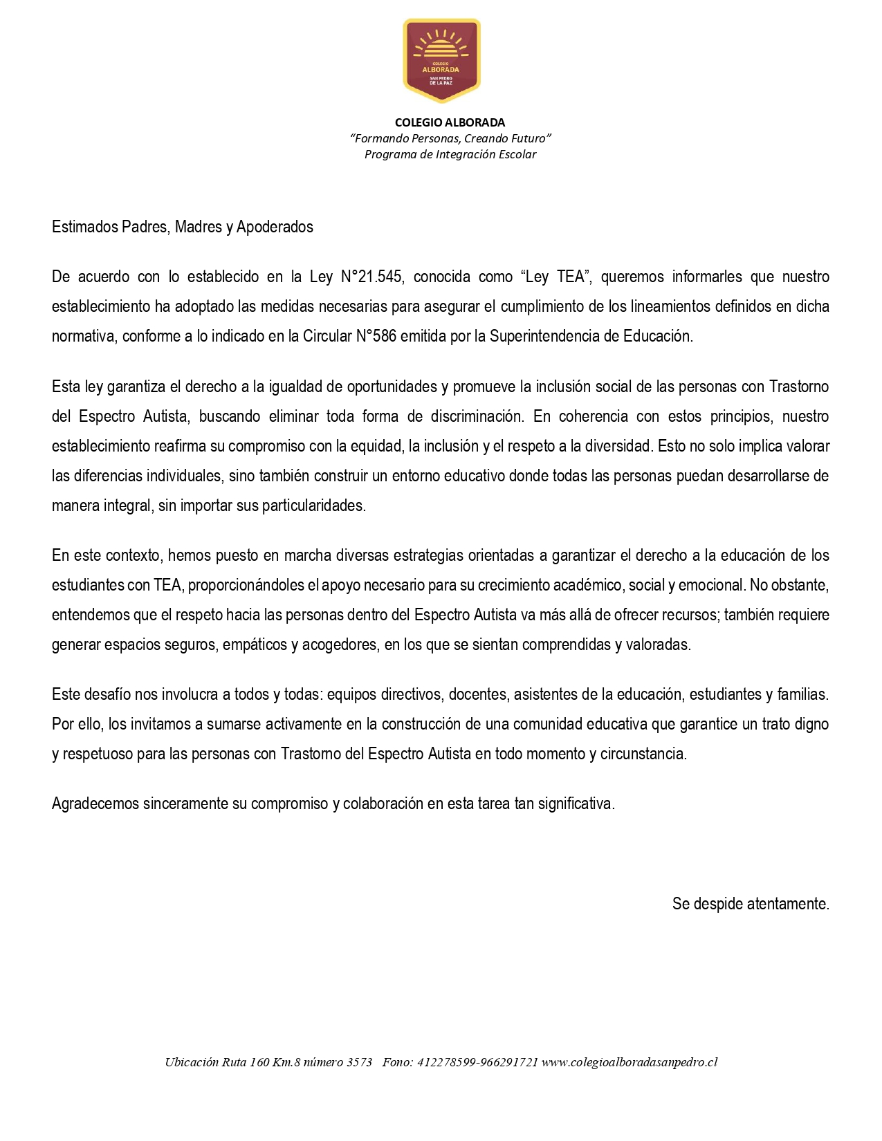 Comunicado Oficial sobre la Ley TEA N° 21.545