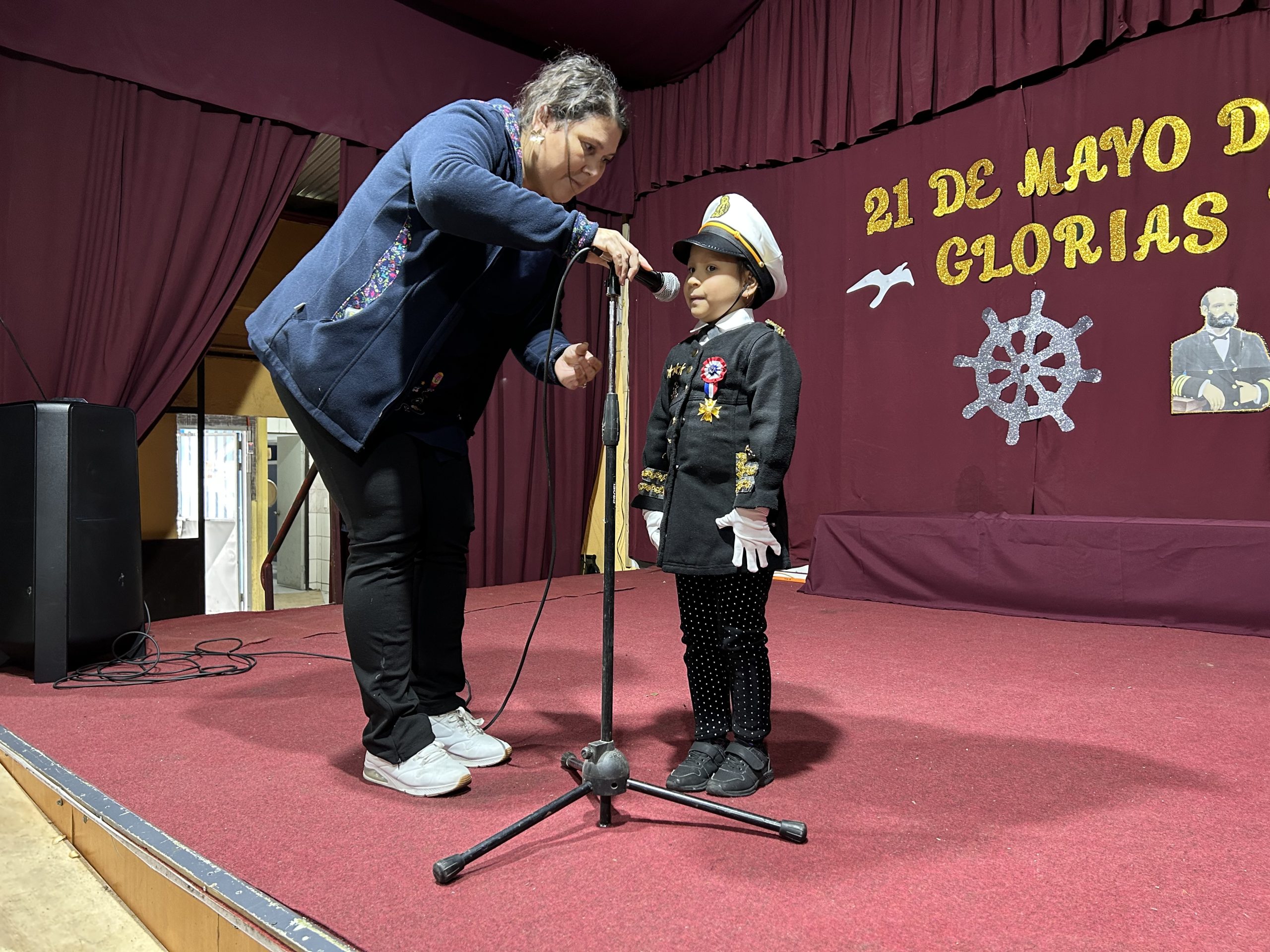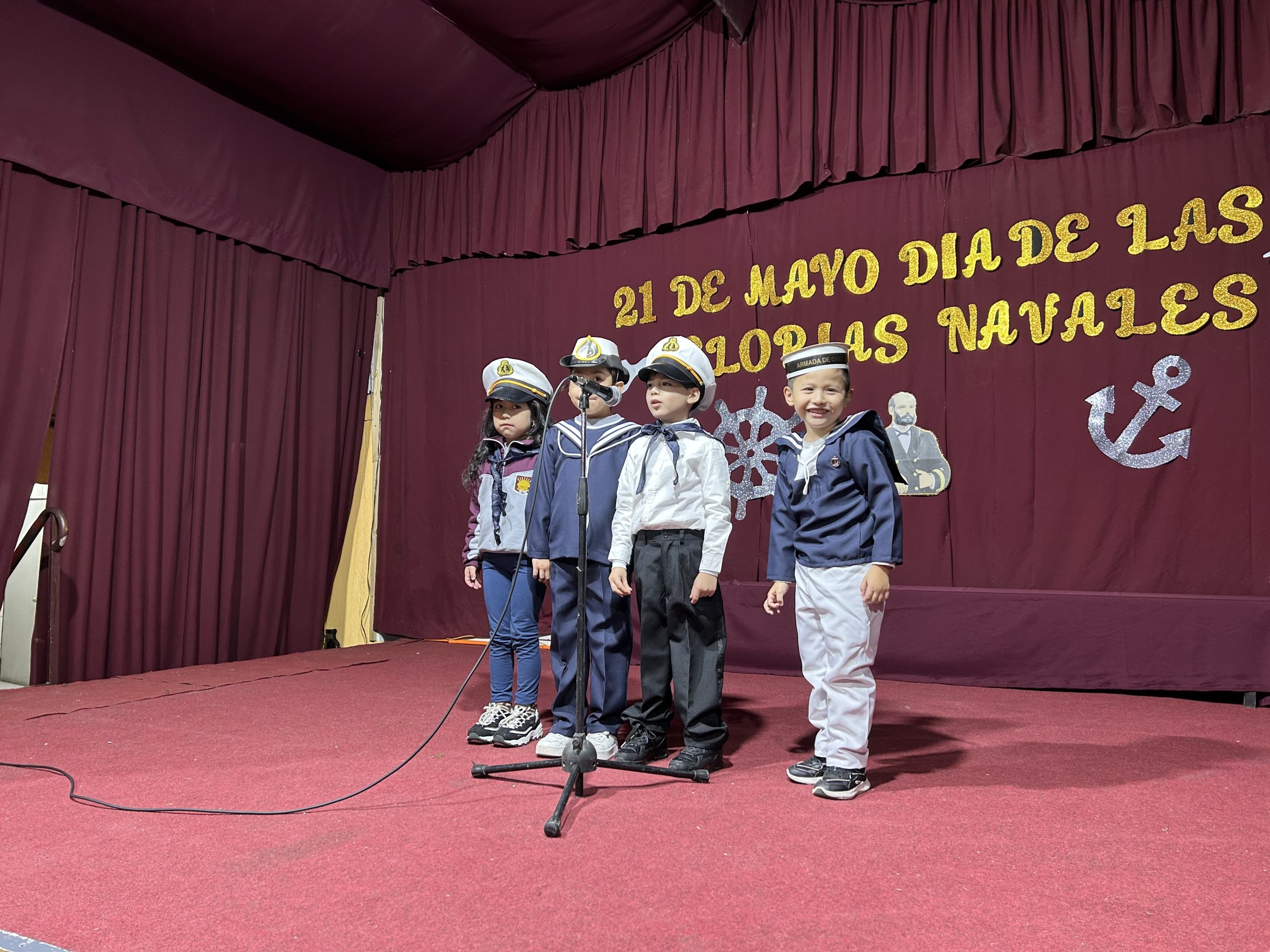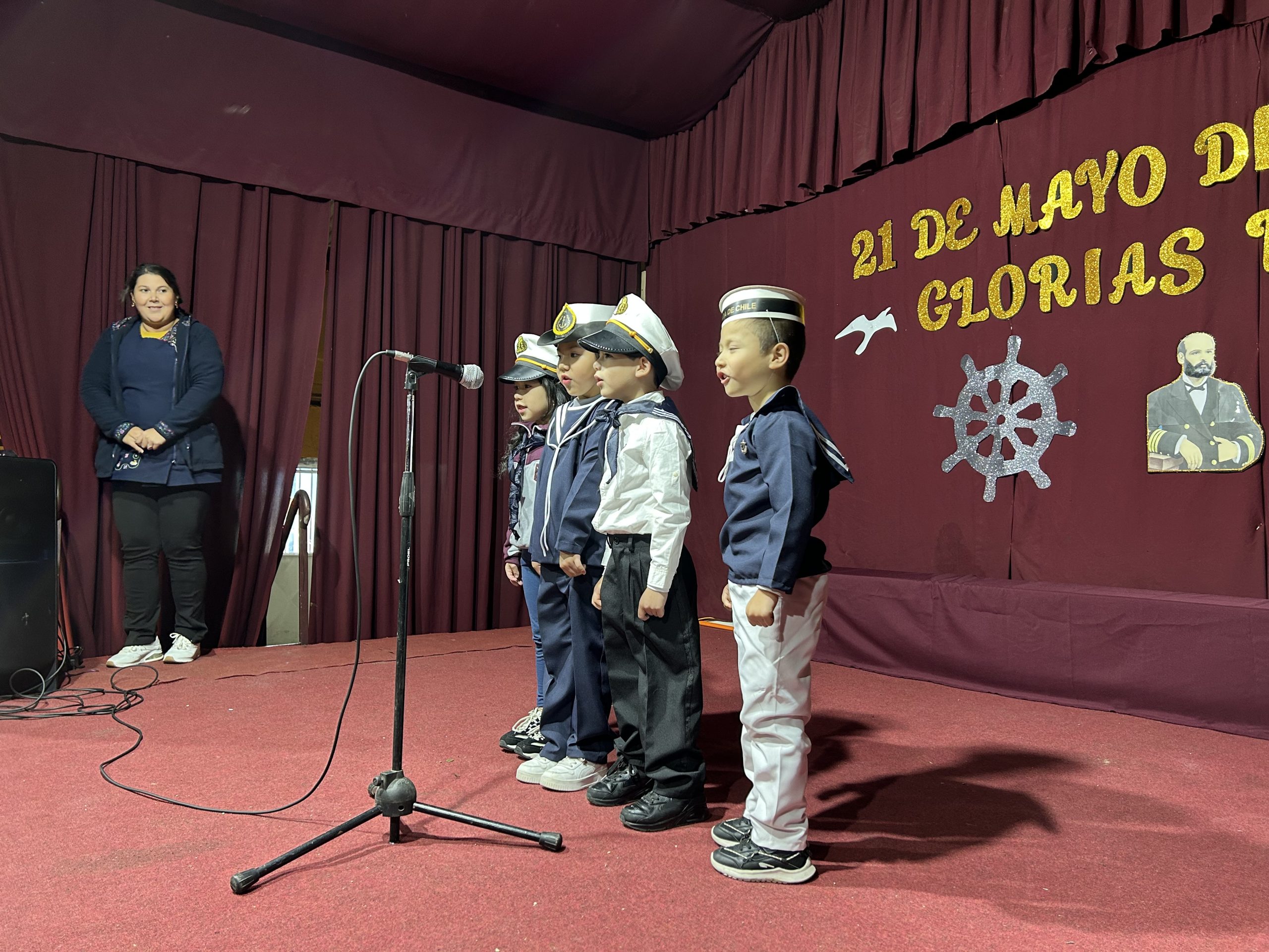 Uno de los momentos más emotivos fue la presentación de los alumnos del Kinder B, quienes recitaron un poema alusivo a esta festividad nacional, destacando el valor y legado de los héroes navales. A través de estas instancias, fomentamos el respeto por nuestra historia y el sentido de pertenencia a nuestra identidad chilena.