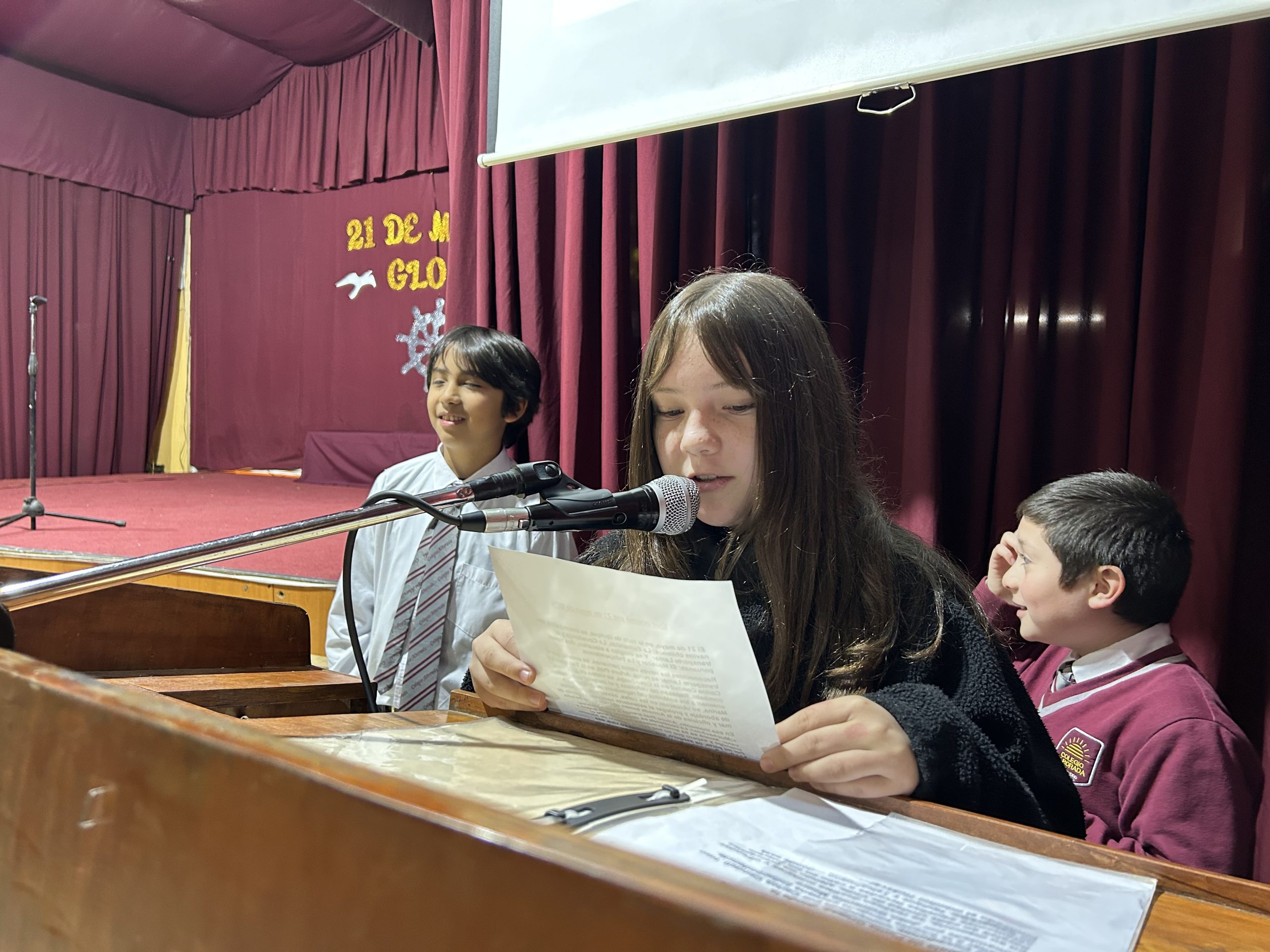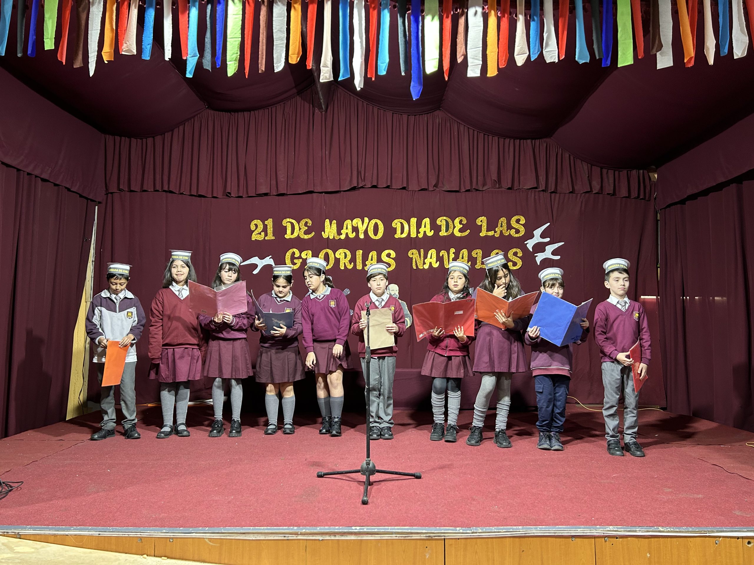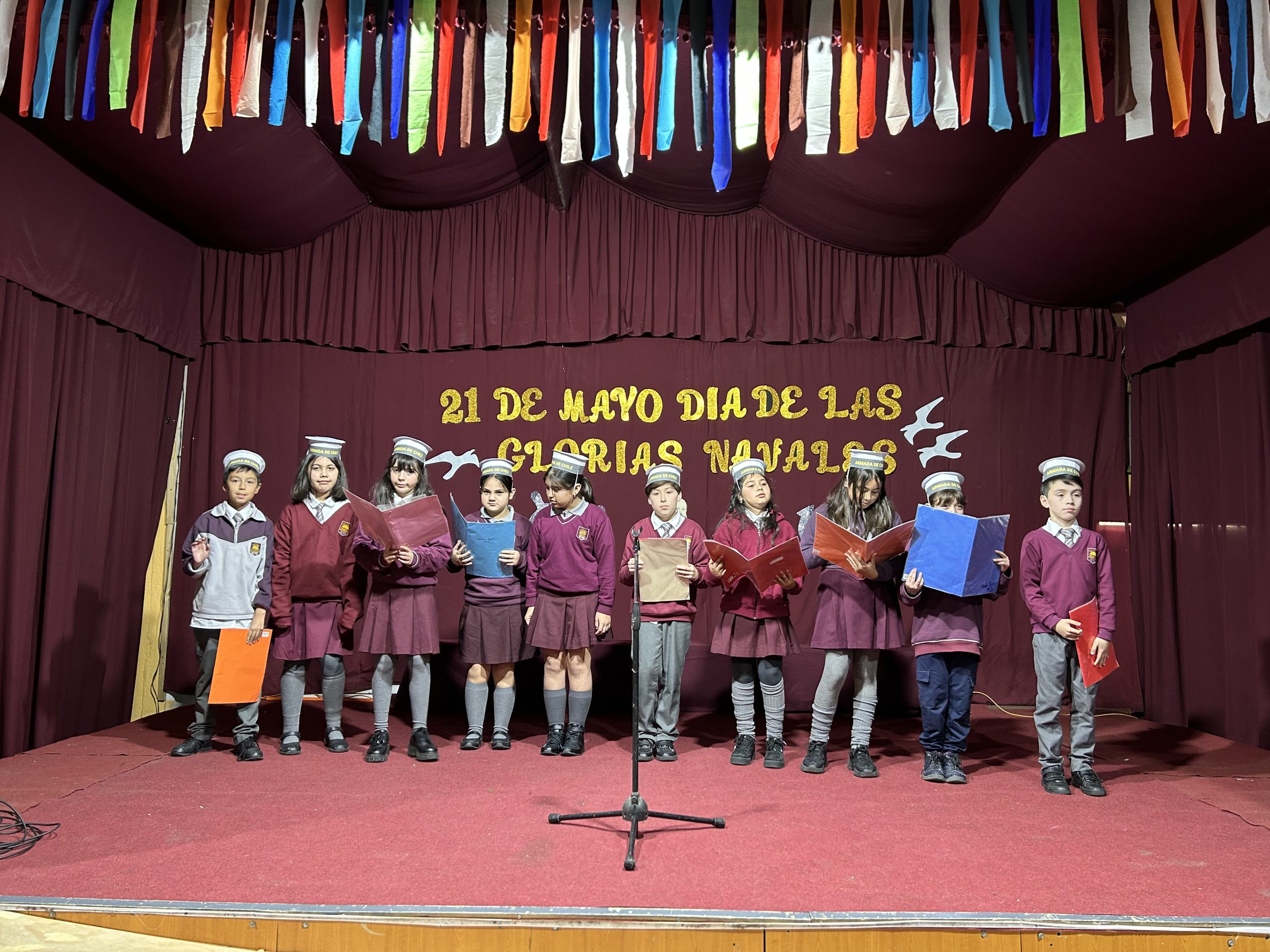 En el marco del Día de las Glorias Navales, nuestra comunidad educativa realizó una significativa conmemoración con la participación de estudiantes de ambas jornadas. La actividad incluyó la proyección de videos históricos que explicaban el origen y la importancia de esta fecha, así como efemérides relevantes.