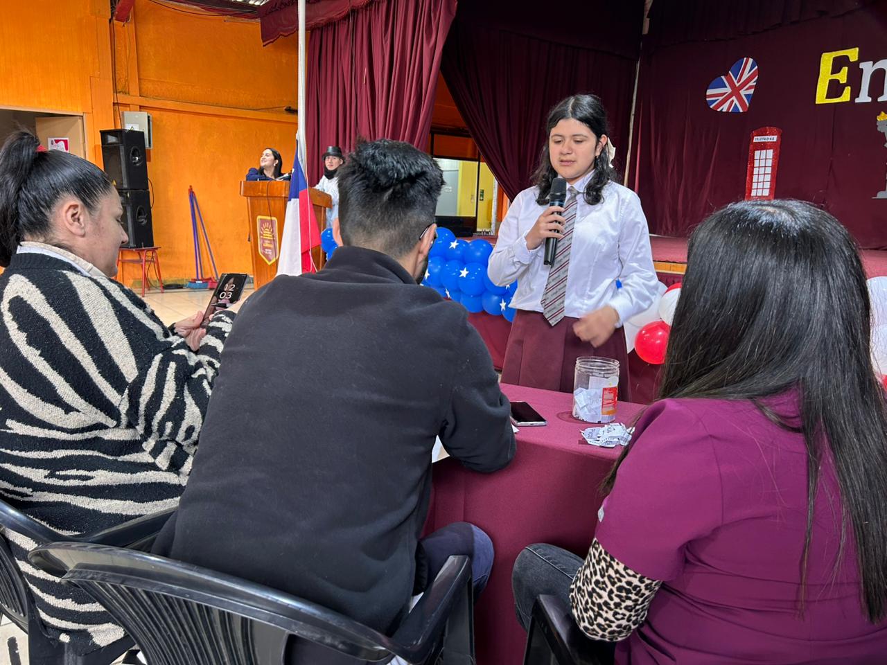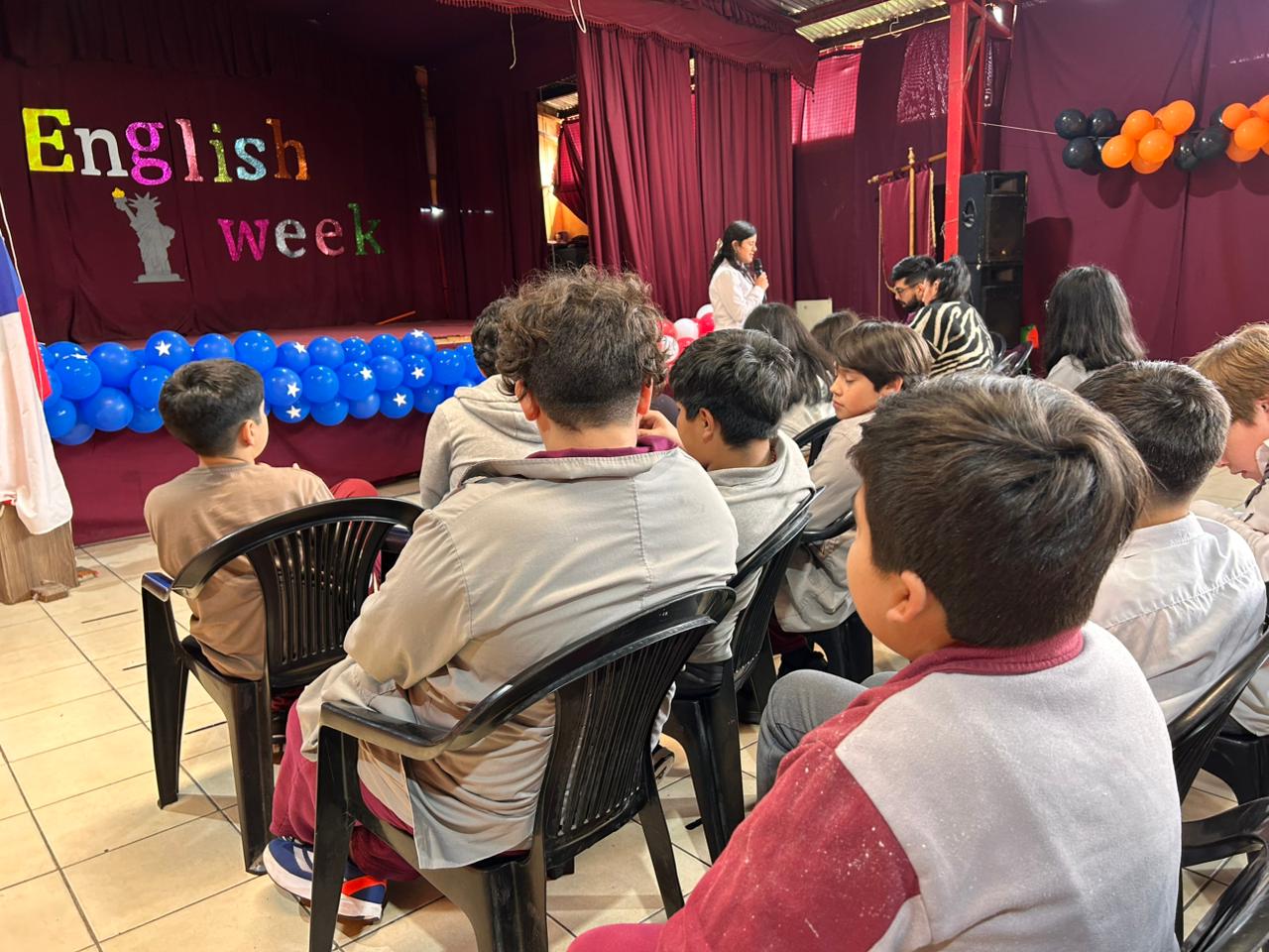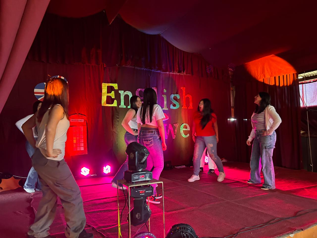 Las fotografías adjuntas reflejan el compromiso y la alegría de los alumnos, quienes participaron en presentaciones de canto, baile y otras expresiones artísticas, todas desarrolladas en torno al uso de la lengua inglesa. Además, se realizaron entretenidos concursos de deletreo en inglés, donde los estudiantes demostraron sus habilidades, esfuerzo y trabajo en equipo.