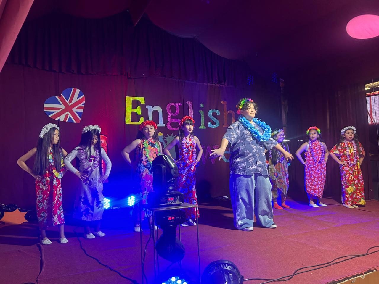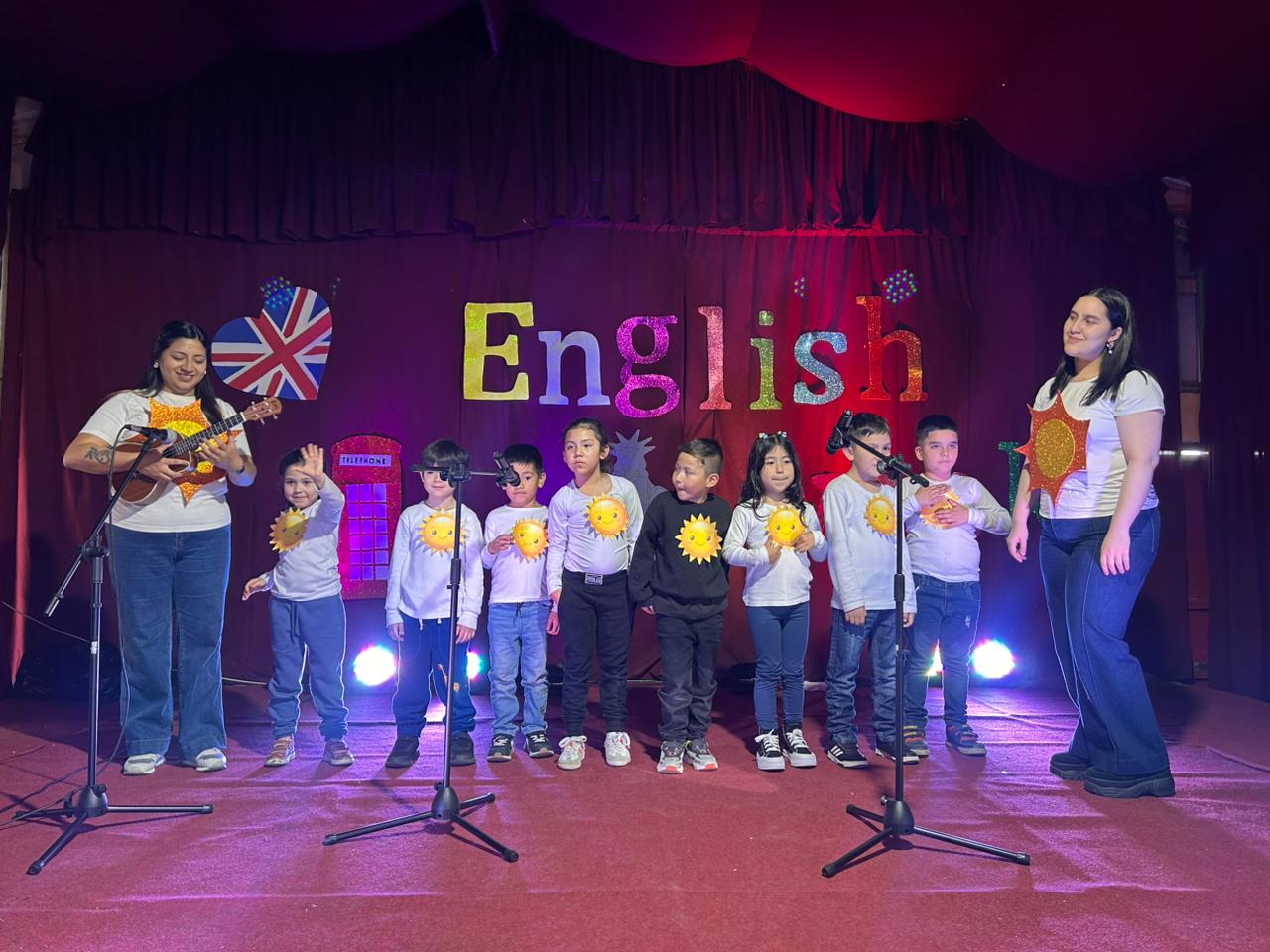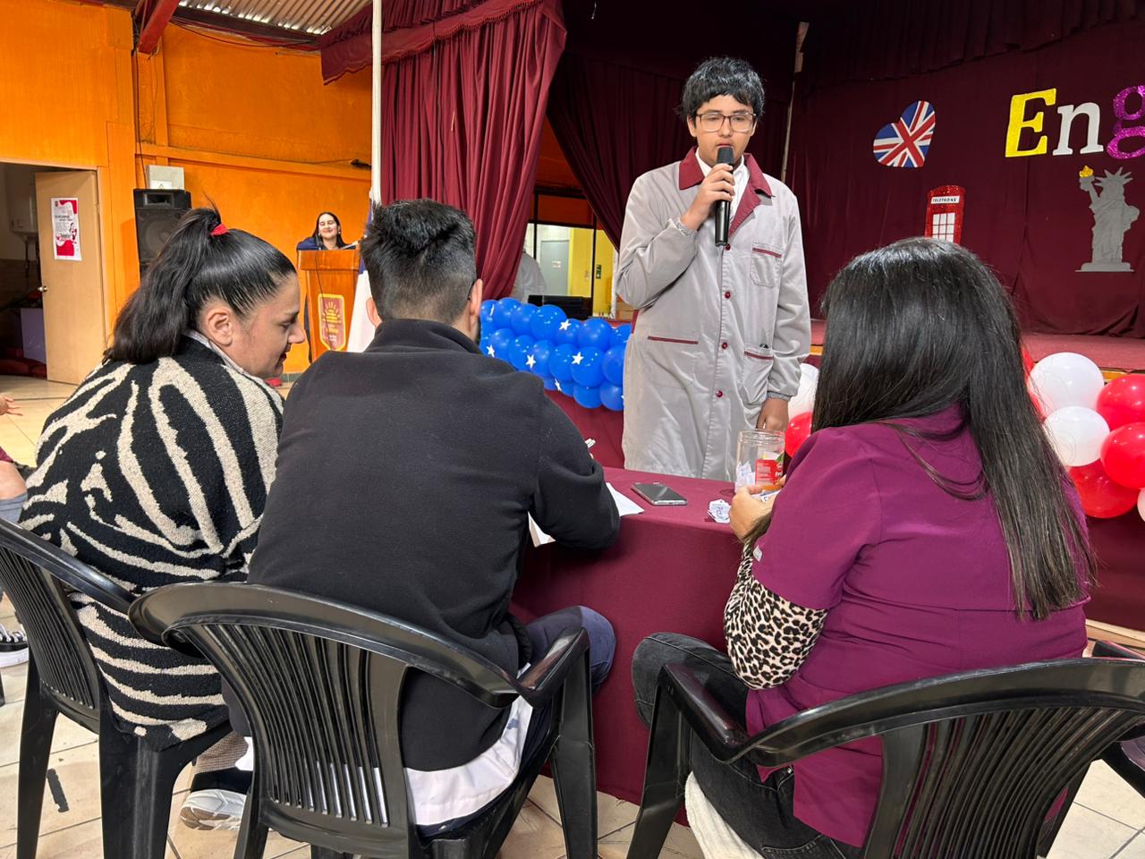 Las fotografías adjuntas reflejan el compromiso y la alegría de los alumnos, quienes participaron en presentaciones de canto, baile y otras expresiones artísticas, todas desarrolladas en torno al uso de la lengua inglesa. Además, se realizaron entretenidos concursos de deletreo en inglés, donde los estudiantes demostraron sus habilidades, esfuerzo y trabajo en equipo.