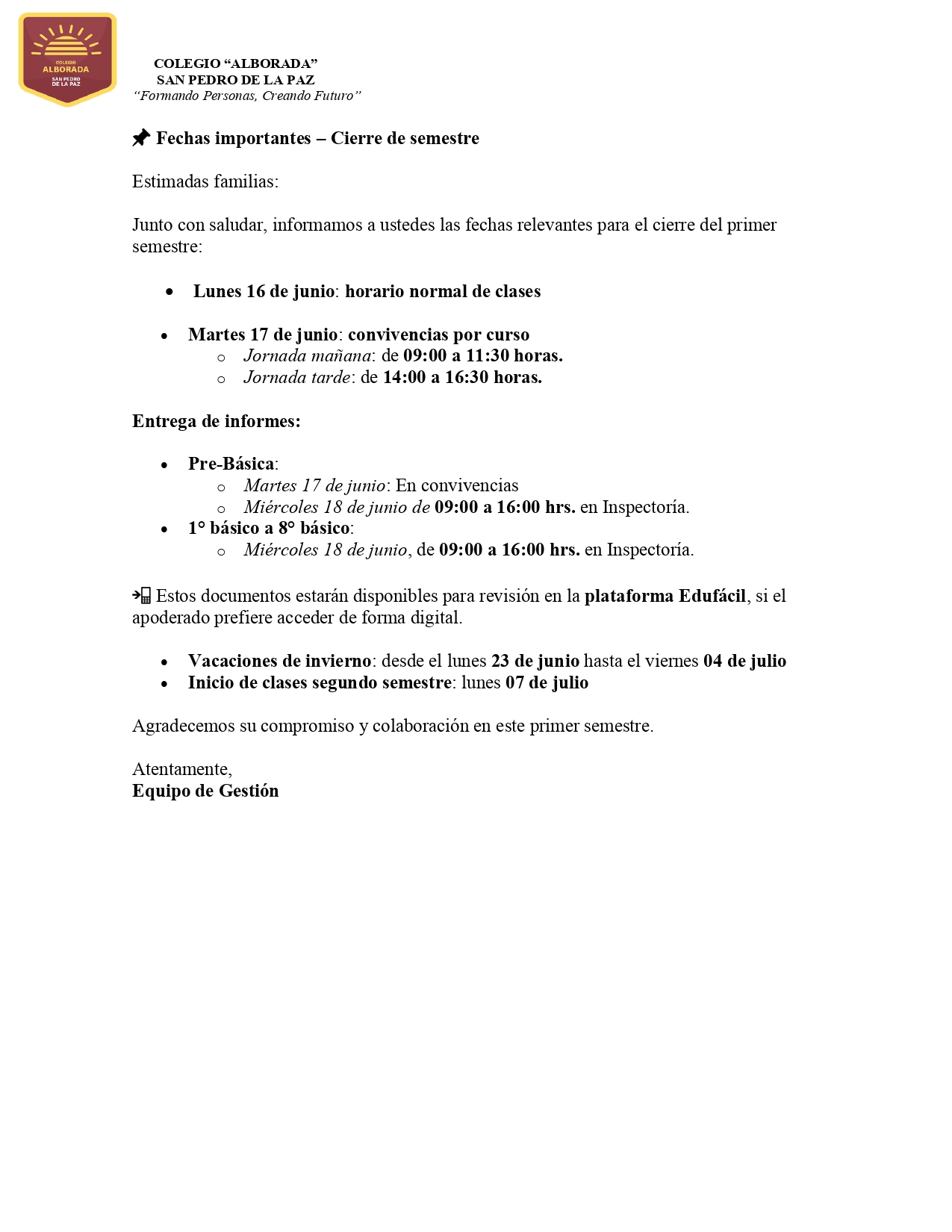 Comunicado a Madres, Padres y Apoderadosjunio 11, 2025Convivencia De Cierre De Talleresjunio 17, 2025 Published by colegio alborada on junio 17, 2025 Categories 3NOTICIAS JUNIO Uncategorized Tags Descargar Share0 colegio alborada Related postsdiciembre 1, 2025Zumbaton en apoyo a teletónRead morenoviembre 21, 2025Semana del párvuloRead morenoviembre 14, 2025English Week En Colegio AlboradaRead more Deja una respuesta Cancelar la respuestaTu dirección de correo electrónico no será publicada. Los campos obligatorios están marcados con *Comentario * Nombre * Correo electrónico * Web Guarda mi nombre, correo electrónico y web en este navegador para la próxima vez que comente.